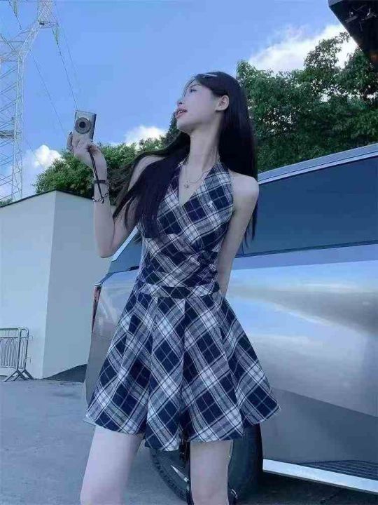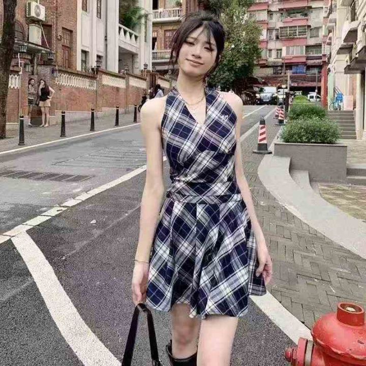 上新全清:13.8一件甜美辣妹V领挂脖收腰显瘦A字连衣裙...