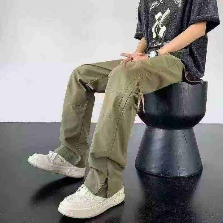 美式冲锋裤男款时尚防风裤子直筒侧拉登山工装裤