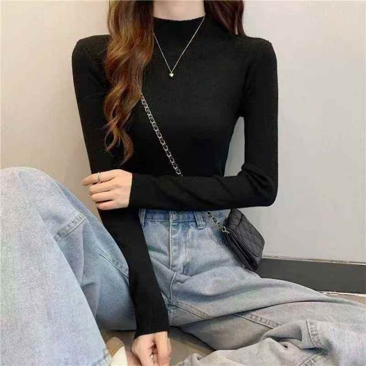 秋冬秋款净版简约百搭半高领打底外穿包芯纱套头毛衣,...