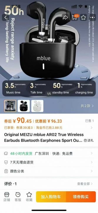 5000pcs原装魅族mblue品牌tws蓝牙耳机,满电待机8小时...