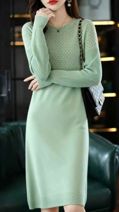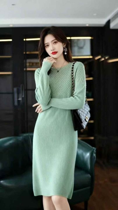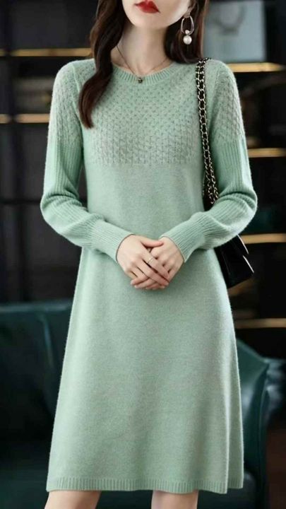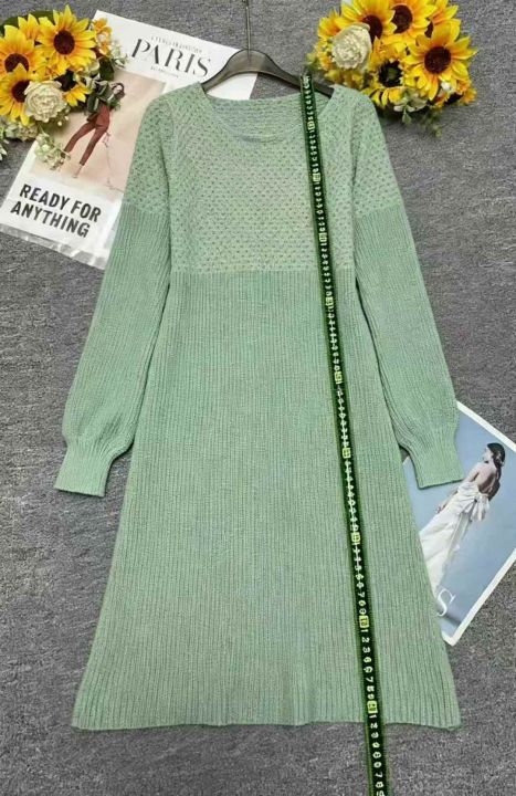 秋冬新欧美风宽松纯色粗针灯笼袖高腰A字圆领毛衣连衣裙,独立包装,码数S--2XL码,面料软糯舒适,102件,全清6.9元超低价秒杀!