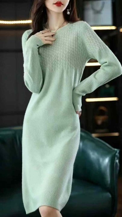 秋冬新欧美风宽松纯色粗针灯笼袖高腰A字圆领毛衣连衣裙,独立包装,码数S--2XL码,面料软糯舒适,102件,全清6.9元超低价秒杀!