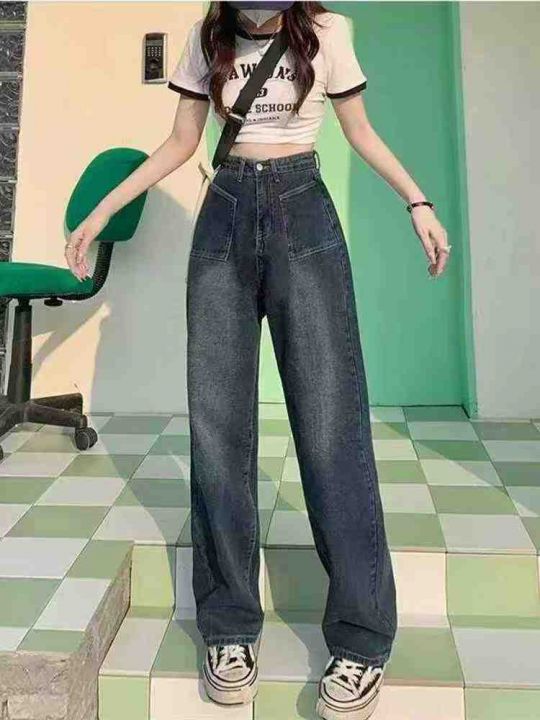 春秋新款宽松高腰洗水棉直筒阔腿牛仔裤独立包装带腰卡,码数M-2XL码2XL的多...