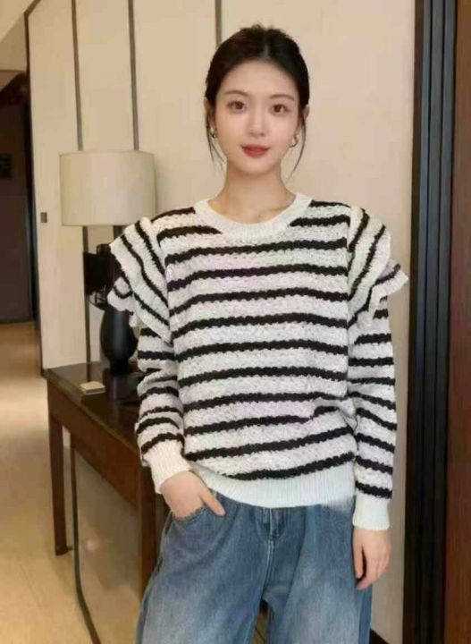 秋冬新款宽松慵懒风撞色条纹小香风套头糯米毛衣,独立...