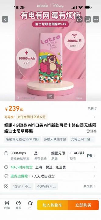 迪斯尼正版草莓熊充电宝,随身Wi-Fi,全新全套原封!送每个月2000G 流量,连续送一年!460个!打包价漂亮!