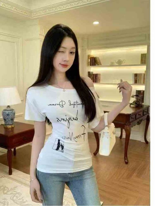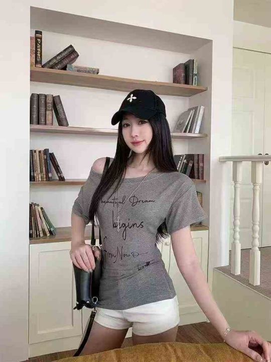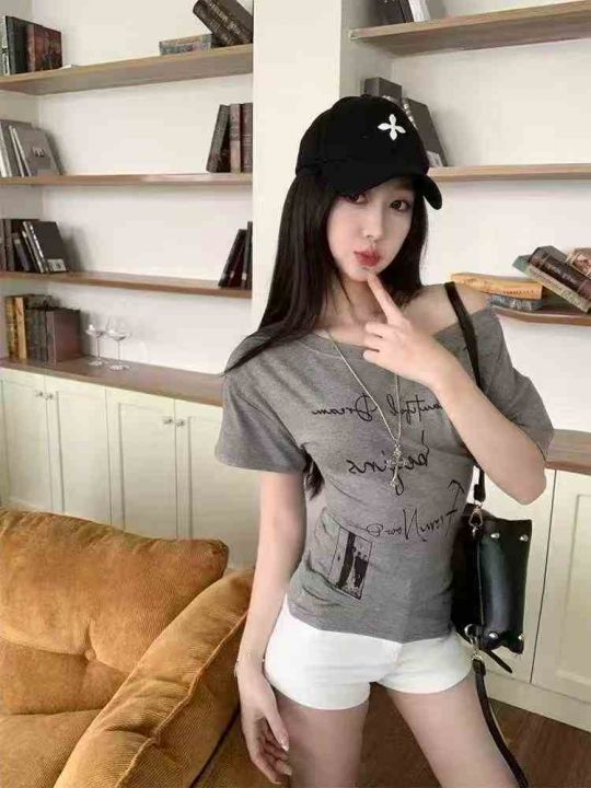 学院风斜肩字母印花设计感收腰显瘦T恤,[爱心]340件左右,灰色为主,款号#1169,码数S-XL,穿70-120斤,万佳档口货,原包装️无瑕疵,[666]实体店品质,分货加一。 货号:1323