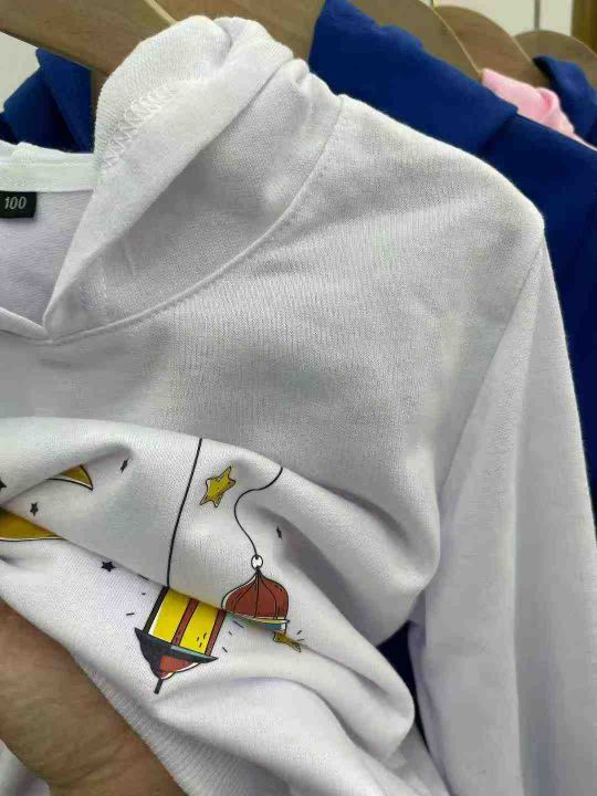 244件儿童连帽印花套头卫衣。面料柔软舒适,后领包边...