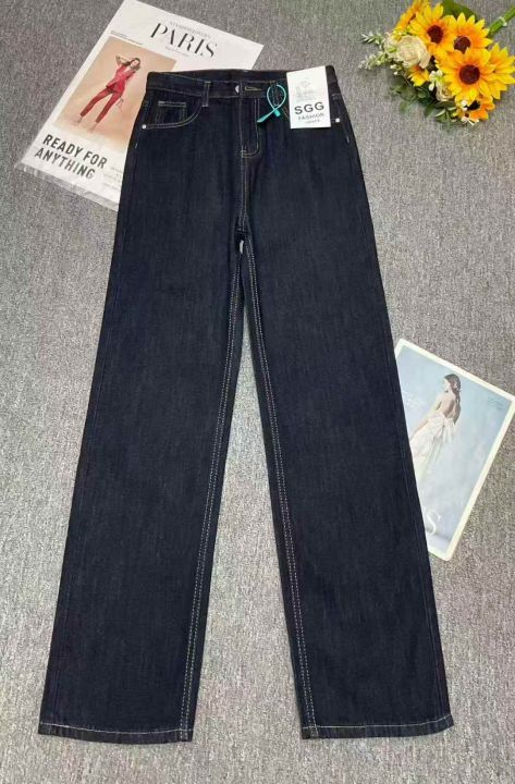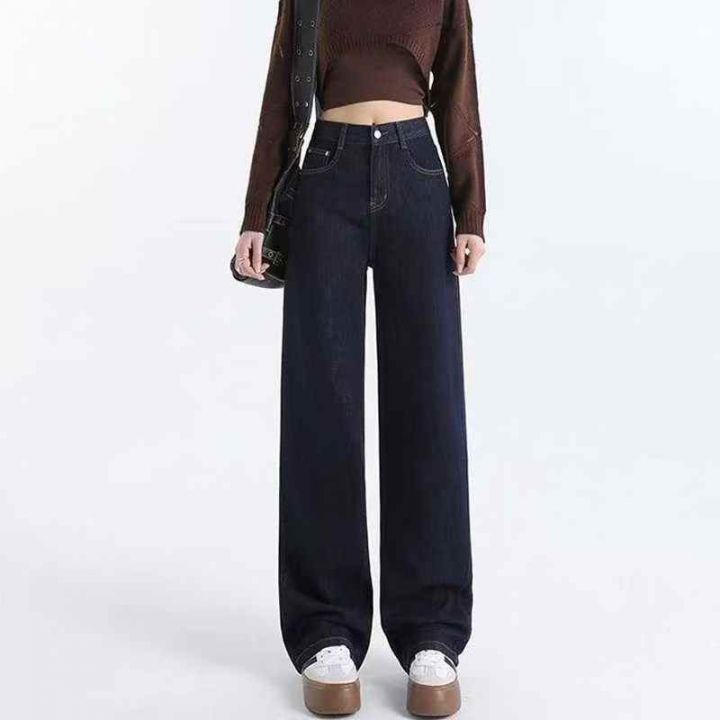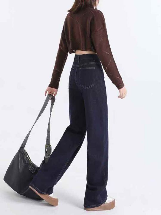 秋冬新款高品质女装复古蓝直筒阔腿牛仔长裤,独立包装...