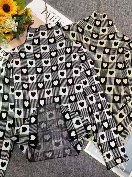 秋装新款韩版洋气设计感爱心高领打底包芯纱套头毛衣,...