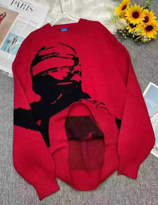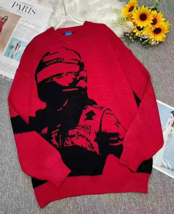 品牌原单大码宽松落肩男女同款提花加厚包芯纱套头毛衣...