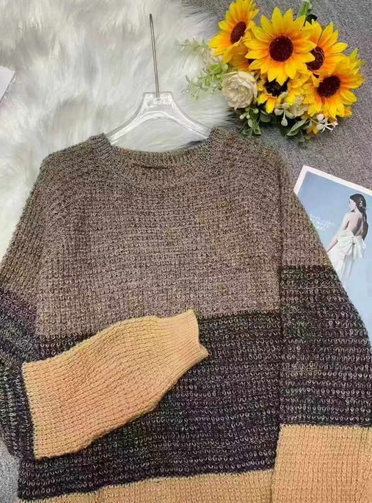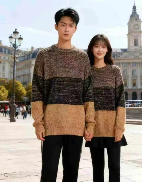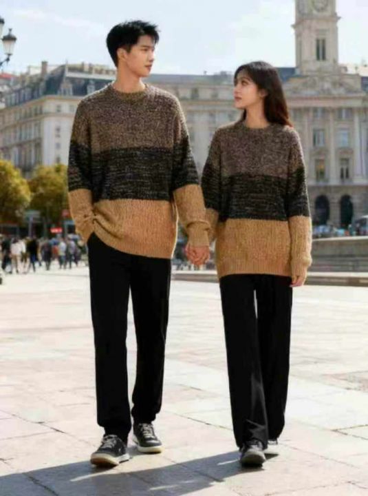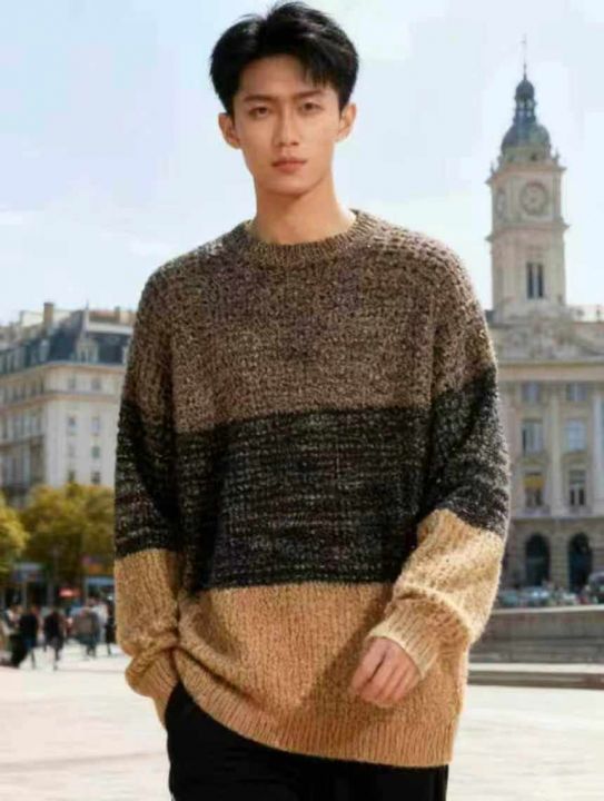 秋冬新款宽松慵懒风男女同款撞色条纹套头毛衣,独立包...