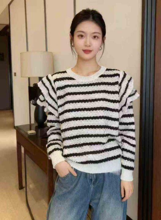 秋冬新款宽松慵懒风撞色条纹小香风套头糯米毛衣,独立...