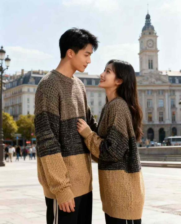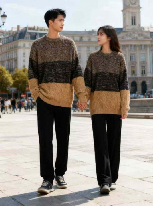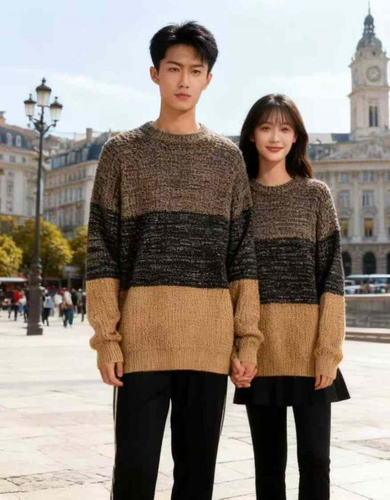秋冬新款宽松慵懒风男女同款撞色条纹套头毛衣,独立包装,均码宽松版,82件,全清7.9元超低价秒杀!