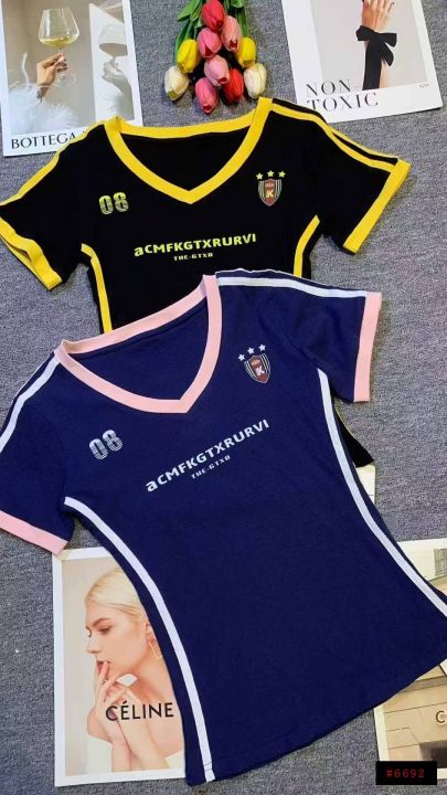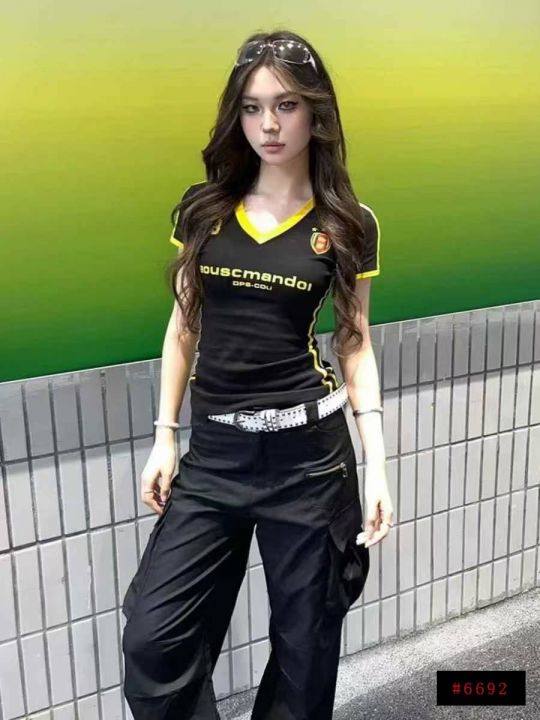 复古辣妹V领撞色拼接修身显瘦T恤,[爱心]190件左右,黑色为主,款号#1009,码数S-XL,穿70-120斤,万佳档口货,原包装️无瑕疵,[666]实体店品质,分货加一@_@