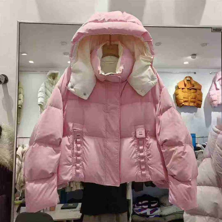 韩系靓妹款超好看新款小众设计感连帽保暖羽绒棉服厚外...