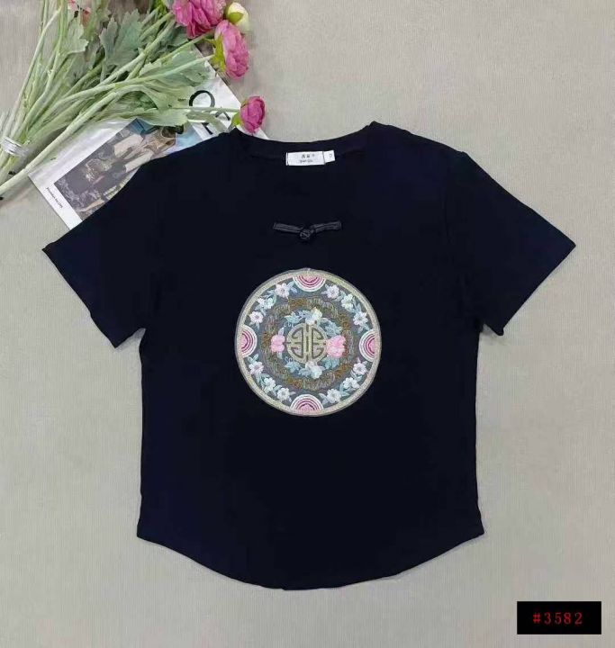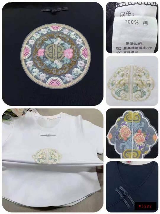 1625件国风重工刺绣中式盘扣拉架棉短袖T恤女,以黑色为主 ,尺码:M~2XL,面料亲肤透气,全部精品独立包装,整款微杂,全清价6.8元,分货加1。@_@