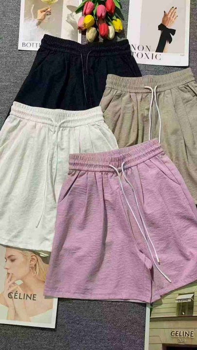 多巴胺抽绳阔腿松紧腰宽松休闲短裤,[爱心]120件左右,奶白、灰色为主,款号#031,码数S-XL,穿70-120斤,万佳档口货,原包装️无瑕疵,[666]实体店品质