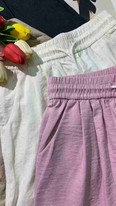 上新全清:11.8一件多巴胺抽绳阔腿松紧腰宽松休闲短裤...