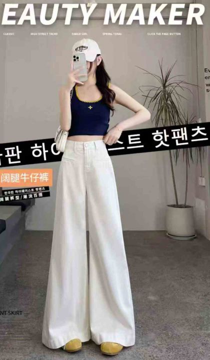 春秋新款高品质洗水棉网红爆款大阔腿牛仔长裤,独立包...
