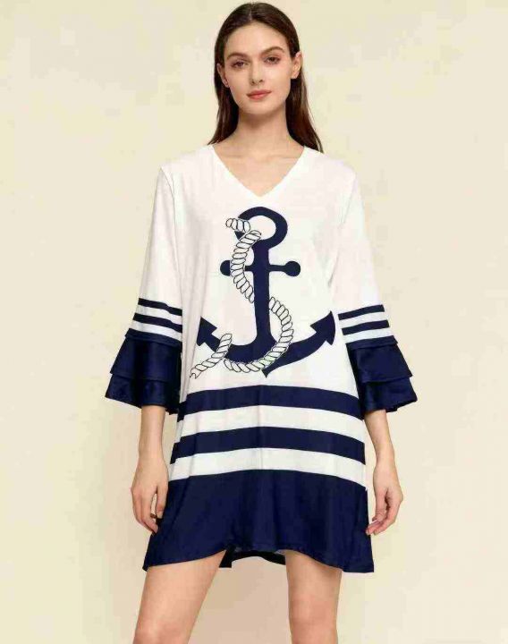 欧美洋气喇叭七分袖印花V领连衣裙 ,领口有包边,品质好,数量 462 条,码数 S-2XL。 有独立包装,全清6.8