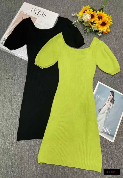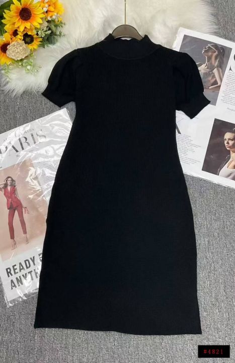 夏季新款法式减龄泡泡袖短袖弹力修身显瘦针织连衣裙,黑色多,独立包装,338件,全清6.9元超低价秒杀!@_@