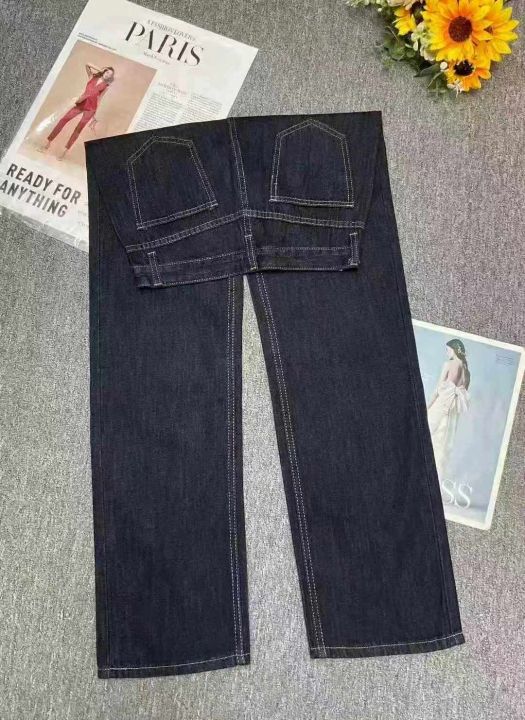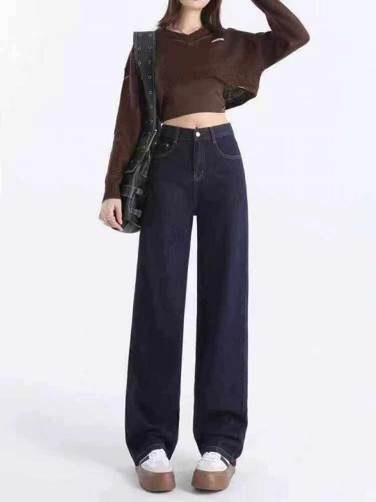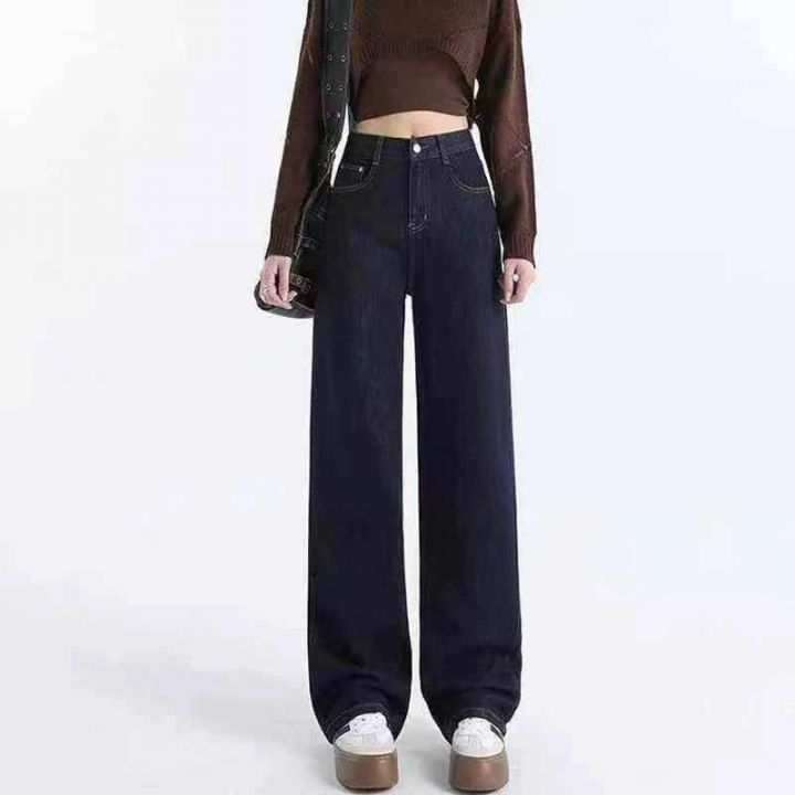 秋冬新款高品质女装复古蓝直筒阔腿牛仔长裤,独立包装...