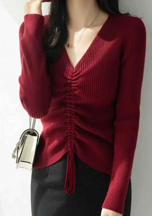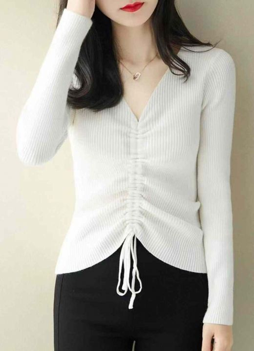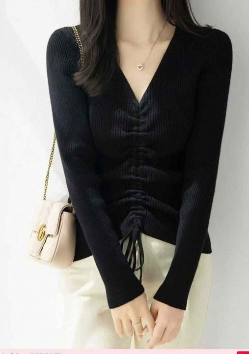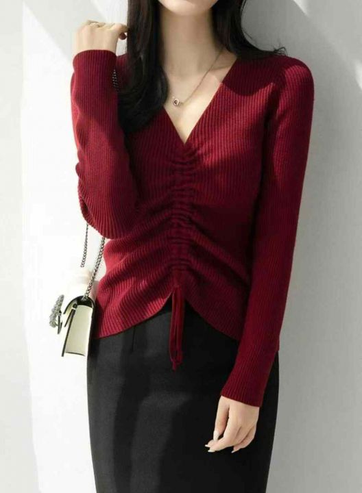 秋季新品韩版V领抽绳设计款包芯纱套头毛衣,独立包装,均码面料软糯舒适弹力大,375件,全清6.9元超低价秒杀!分货加一!