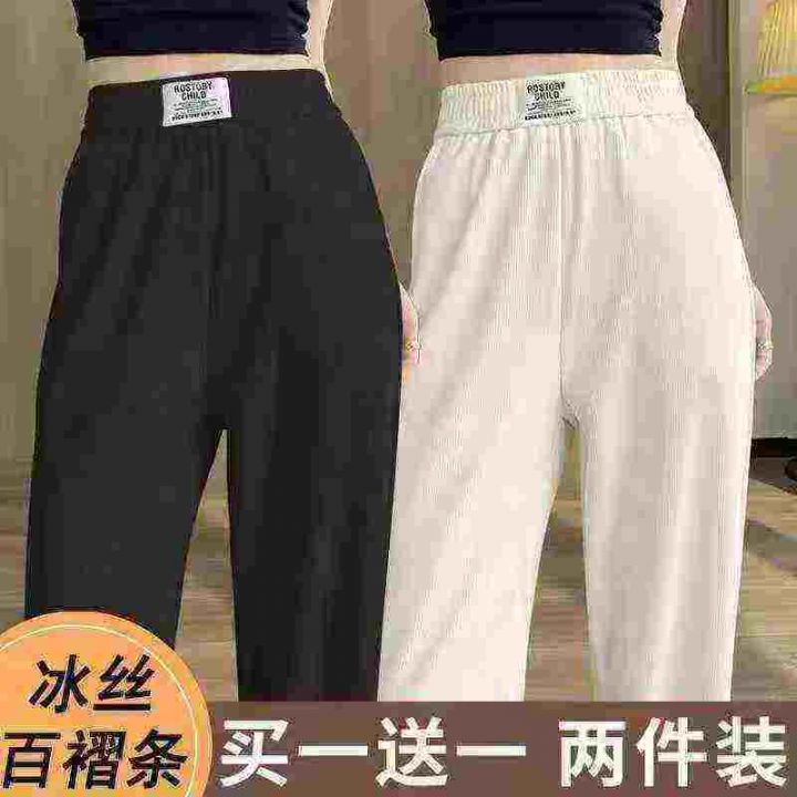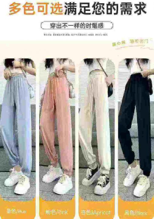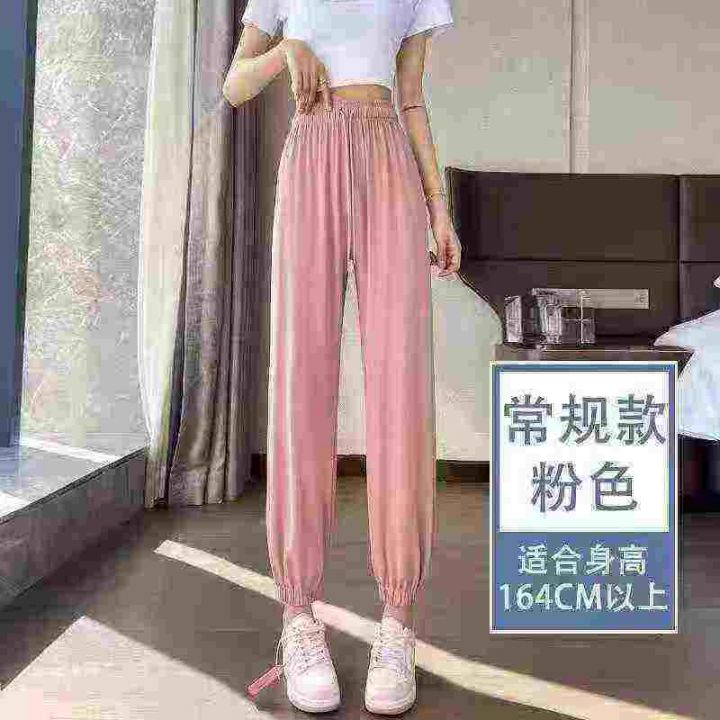 女冰丝束脚休闲运动裤薄款垂感显瘦灯笼裤慵懒山本裤子