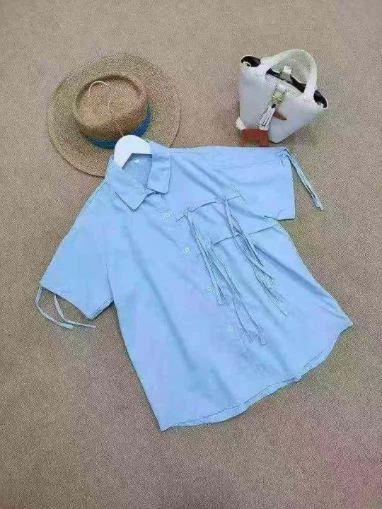 [月亮]:系带设计感日系短袖衬衫