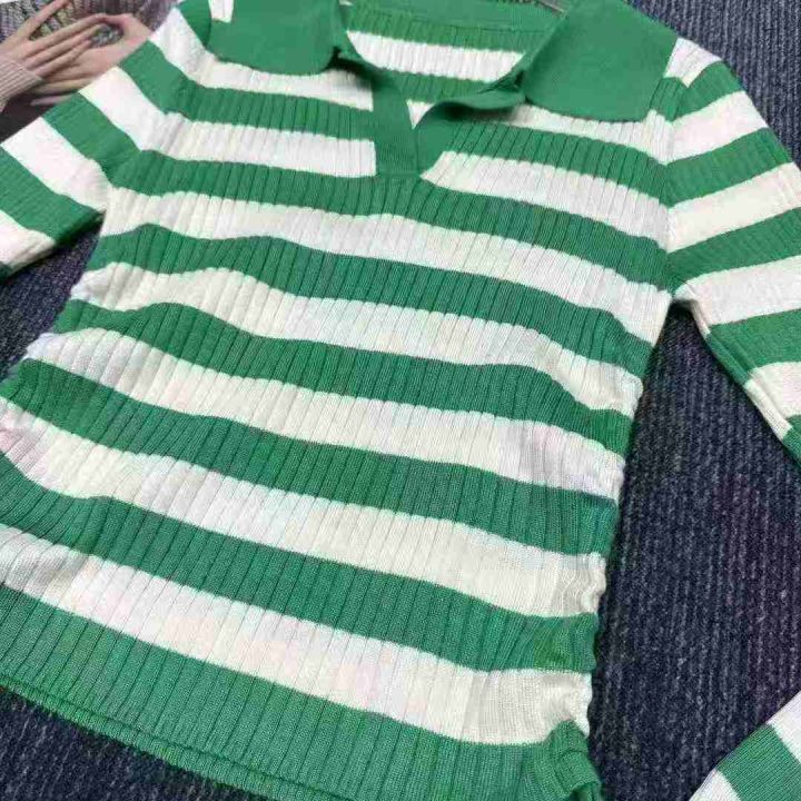 淘宝在售爆款条纹针织衫女春秋款洋气v领毛衣内搭设计...