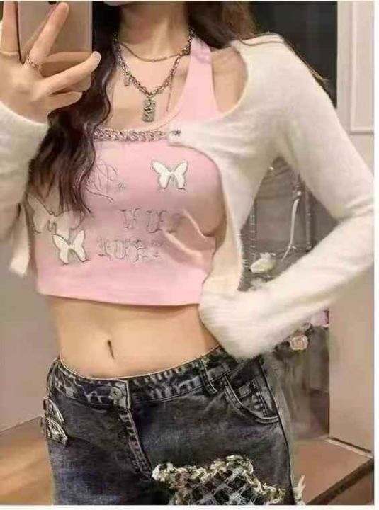 [月亮]:美式复古潮流辣妹挂脖绑带吊带背心