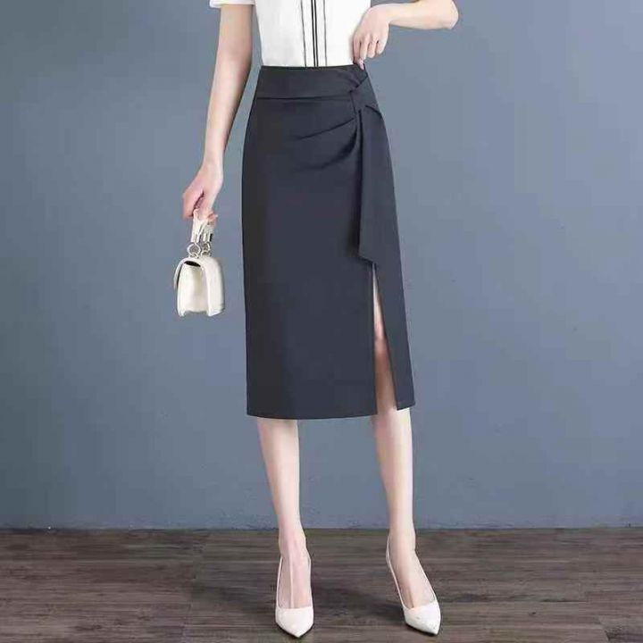 [月亮]:高品质气质女性开衩绑带西装半身裙
