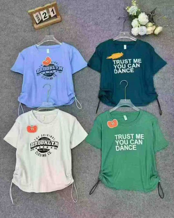 100件美式复古字母印花,靓妹甜妹修身t恤短袖,多颜色,多花型,侧边抽绳设计,领口包边到肩颈,高弹力,品质好可入实体店,均码,可穿到120斤左右。独立包装带吊牌,全清 7.9