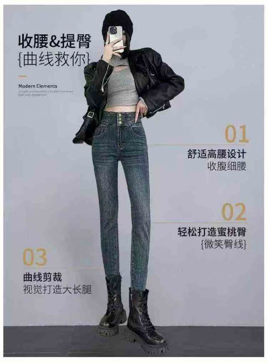高弹力加绒牛仔裤小脚裤子显高铅笔裤子,独立包装带吊...