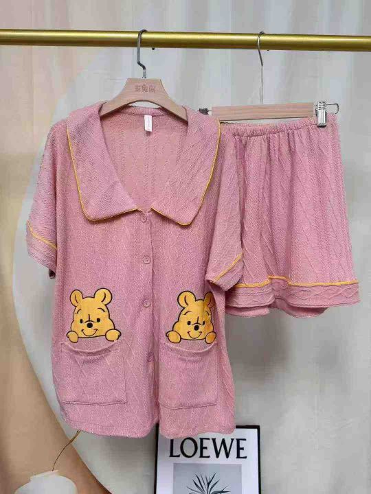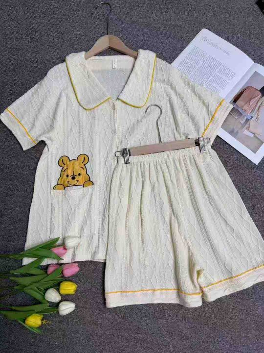 106套夏季女士新款双短维尼熊针织开衫睡衣套装,独立包装,尺码M-2XL
