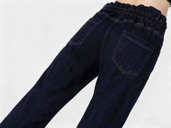 天猫下架冬季新款高腰松紧腰高弹力加绒直筒牛仔长裤,独立包装带吊牌,码数66-77-88相当于(L-XL-XXL)码,413件左右,全清11.8元超低价秒杀!