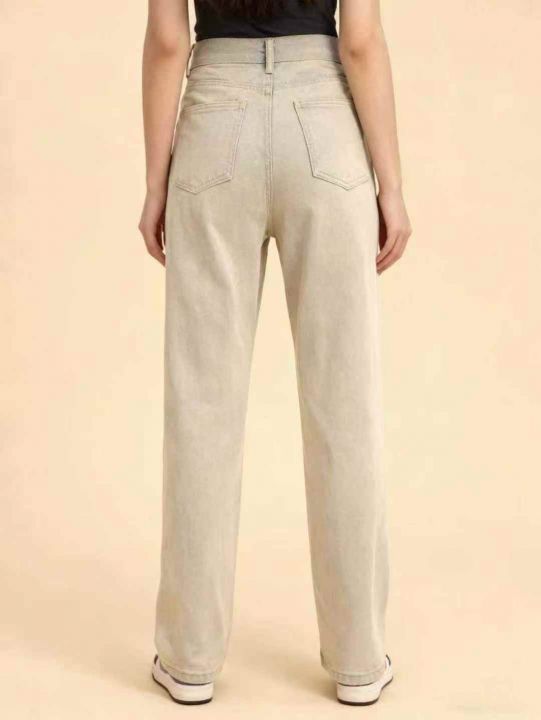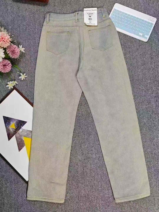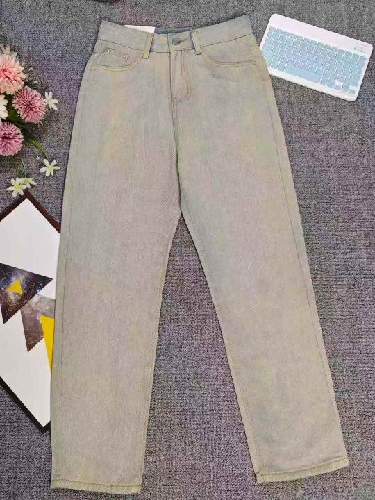 天猫下架美式复古黄泥色窄版直筒烟管牛仔裤,460件左...