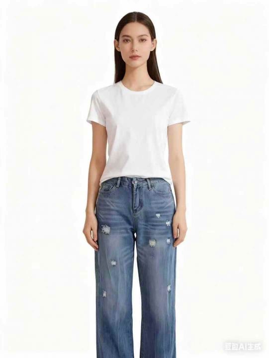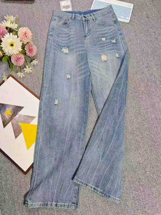 天猫下架水洗棉裂纹破洞复古牛仔裤,213件,原厂独立...