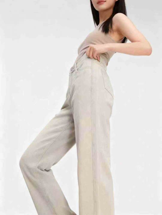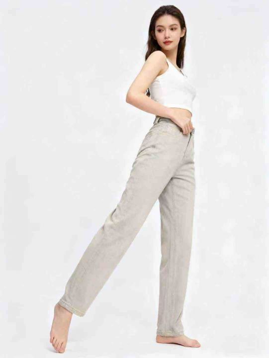 天猫下架美式复古黄泥色窄版直筒烟管牛仔裤,460件左...