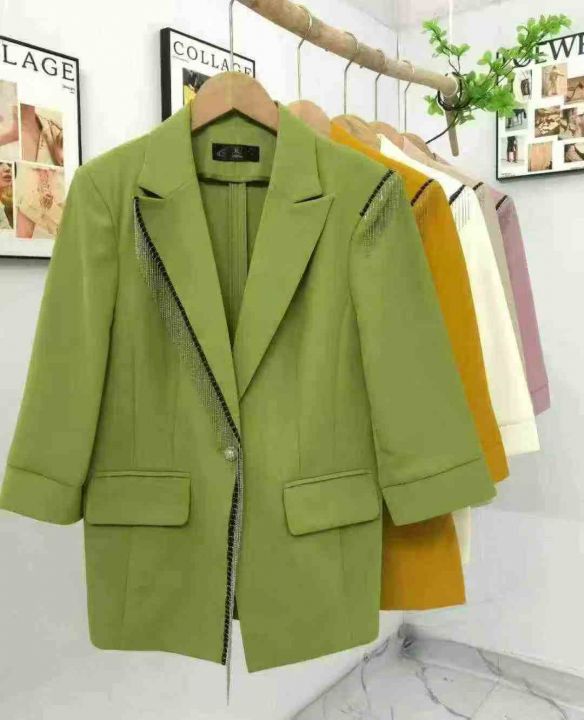 品牌白领高级中袖西装,清18.8珍珠单扣流梳款式,双前...