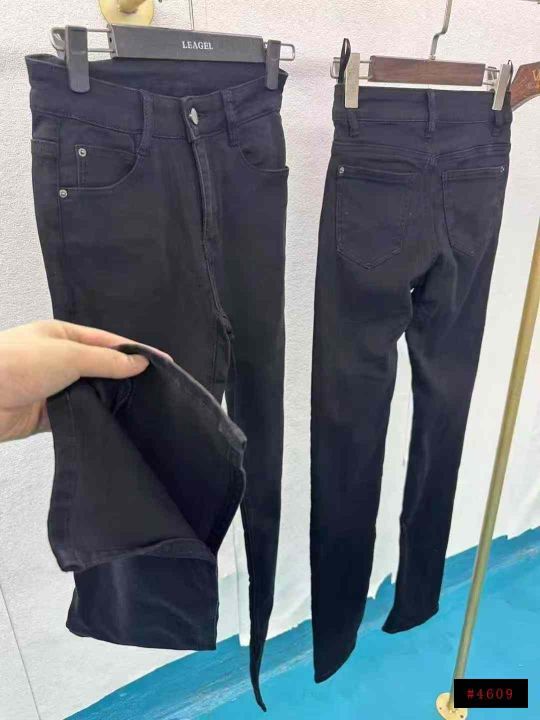 纯黑色高腰提档窄版直筒秋款牛仔裤女款秋季秋款加厚弹力修身显瘦长裤子 钢扣 拉链独立包装