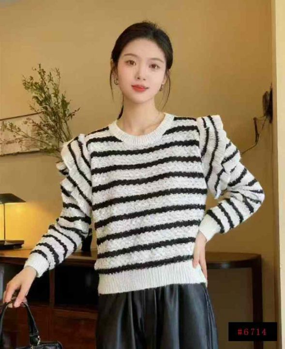 秋冬新款宽松慵懒风撞色条纹小香风套头糯米毛衣,独立包装,均码面料软糯舒适,50件左右,全清7.9元超低价秒杀!@_@