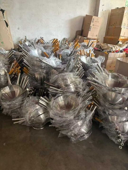 不锈钢单柄炒锅2吨左右,6元一斤,十几块钱一个...