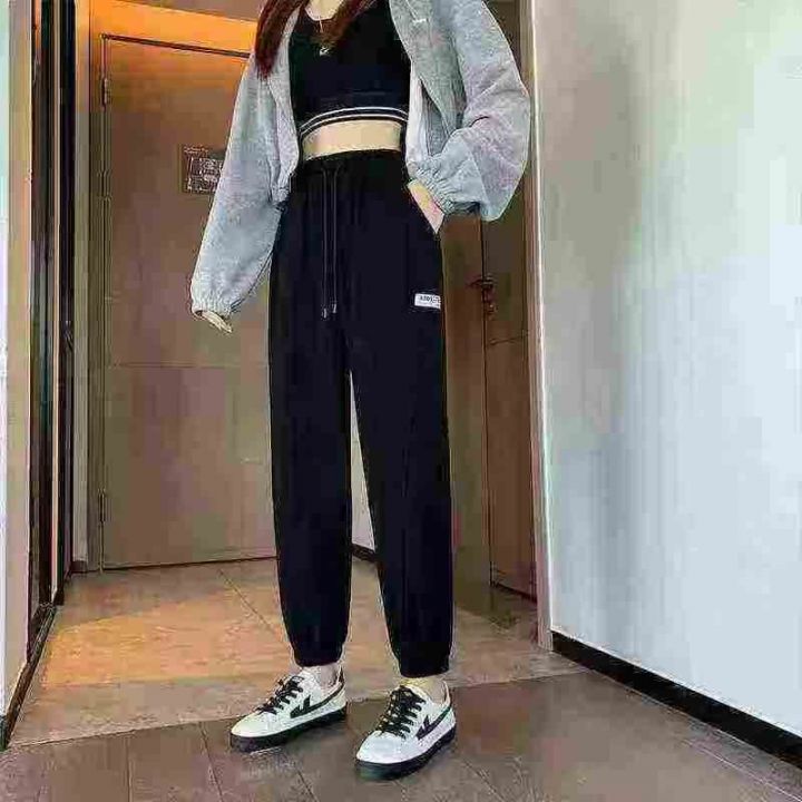 美式运动卫裤宽松束脚裤高腰休闲阔腿裤运动裤女宽松束脚休闲裤春秋卫裤,309条,码数S-2XL,(1-5码)小整带杂,独立包装货品干净(货号5025#29)