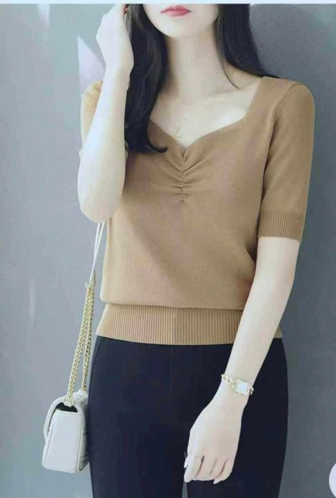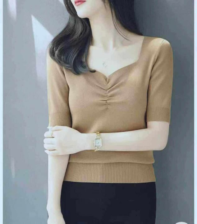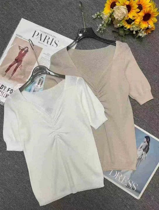 夏季新款温柔风宽松百搭冰丝复古V领针织T桖,独立包装均码面料软糯舒适弹力大,330件,全清5.9元超低价秒杀!分货加一!
