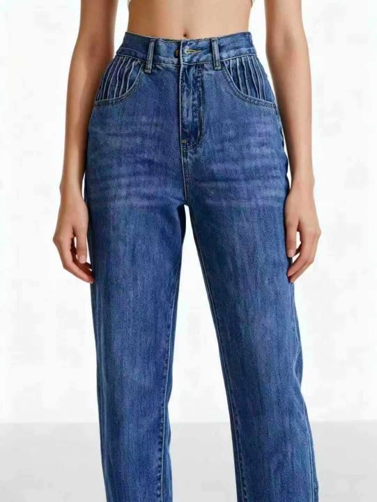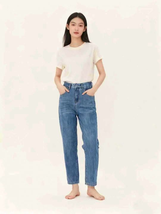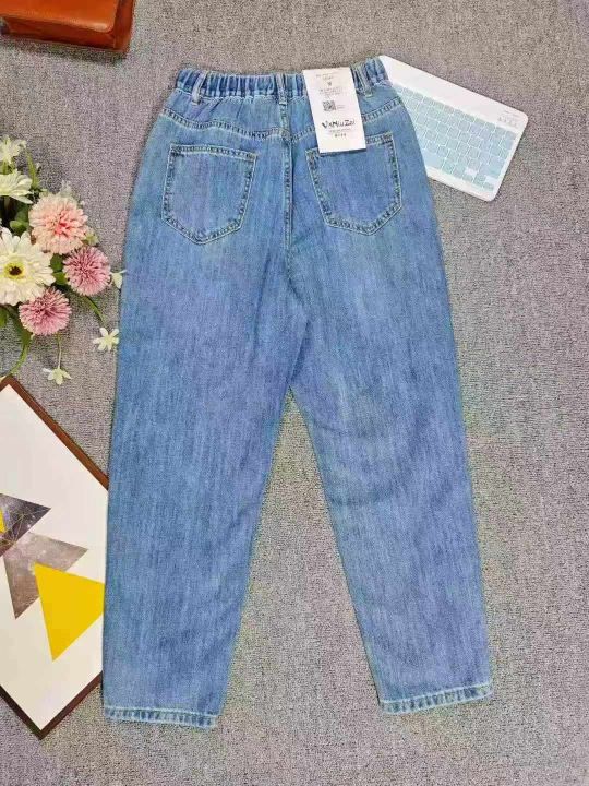 天猫下架洗水棉网红爆款松紧腰哈伦牛仔老爹裤,独立包...