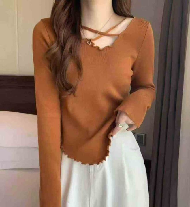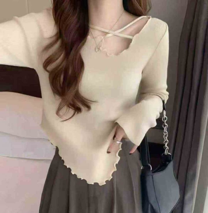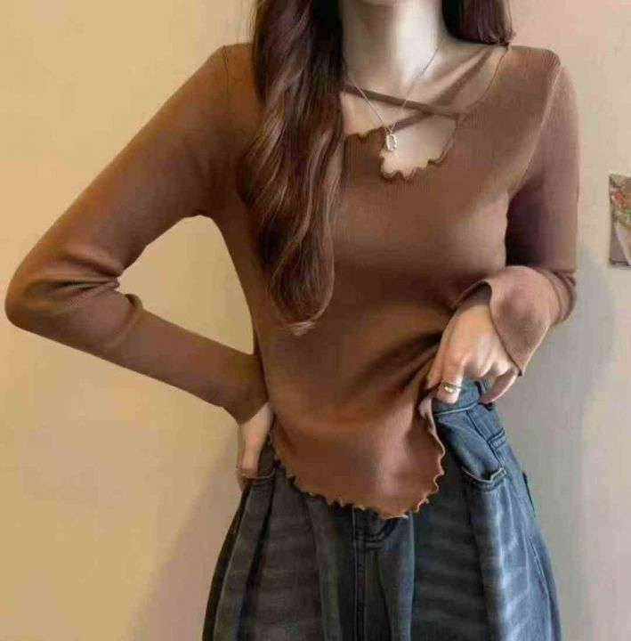 秋冬新款不规则辣妹纯欲风美拉德色系木耳斜边独特设计长袖针织衫,独立包装,均码面料柔软舒适弹力大,946件,全清6.9元超低价秒杀!分货加一!。 货号:24862