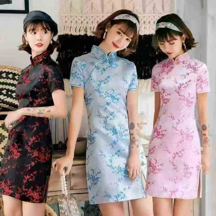 复古改良时尚短款两侧开衩旗袍连衣裙,独立包装,两整款,码数1-4码,数量287条,3码88厘米,货号1116#33。 货号:1323