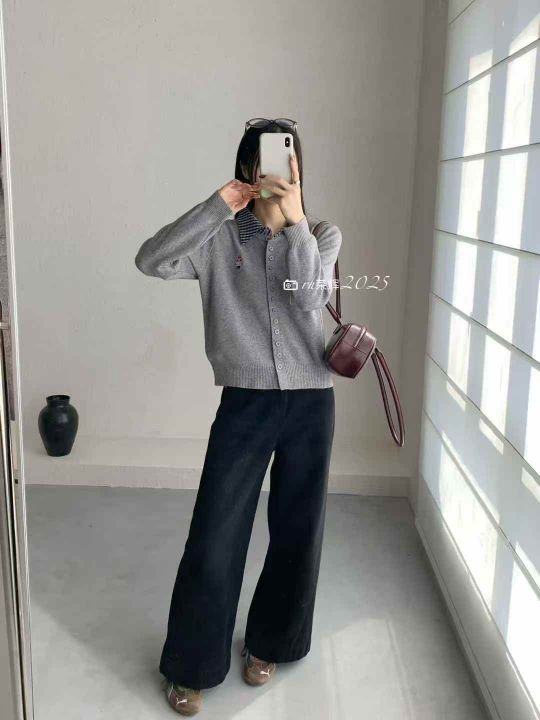 秋季新品撞色条纹百搭短款宽松针织毛衣开衫,独立包装,均码面料柔软舒适弹...