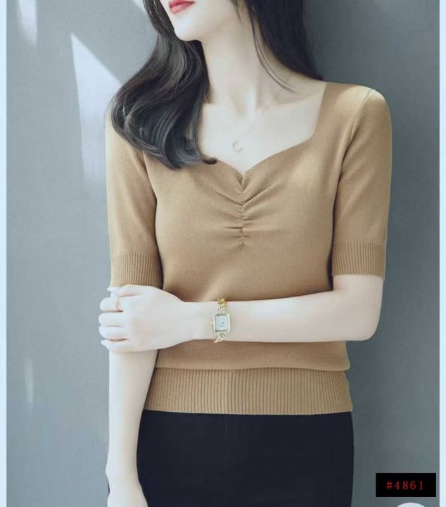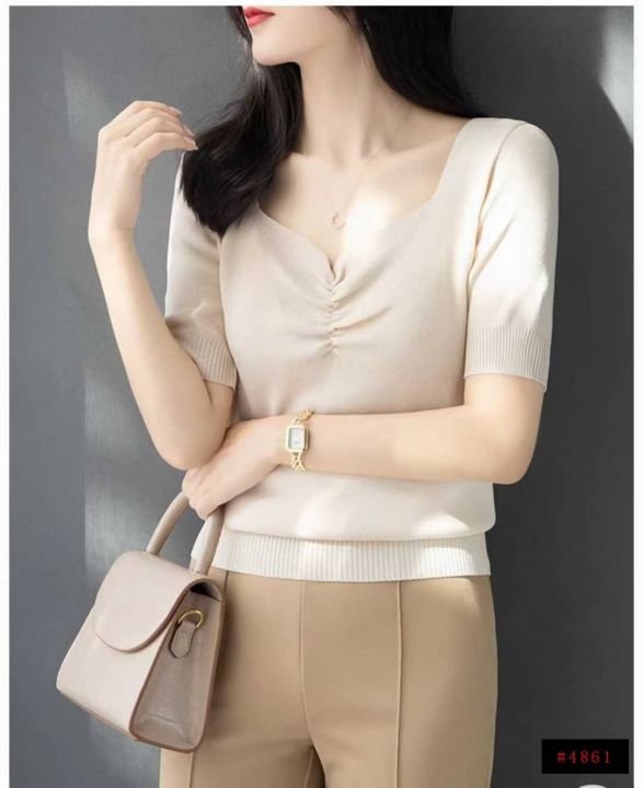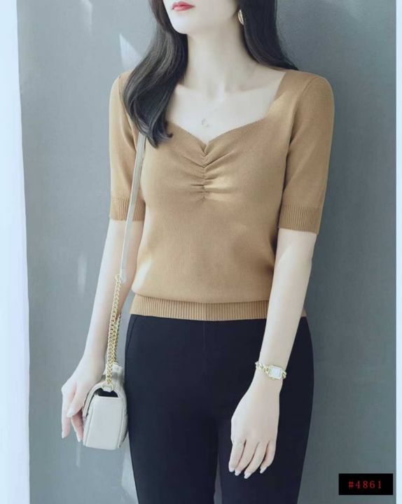 夏季新款温柔风宽松百搭冰丝复古V领针织T桖,独立包装均码面料软糯舒适弹力大,330件,全清5.9元超低价秒杀!分货加一!@_@